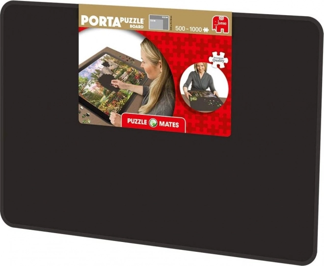 A praktikus JUMBO Porta Puzzle Board kirakóalátét megkönnyíti a kirakók összeállítását és a félkész kép áthelyezését. Könnyű, kompakt, és 1000 darabos kirakókig (kb. 68 × 49 cm) használható. Önálló alátét peremek nélkül – a kirakó nem része a csomagnak.