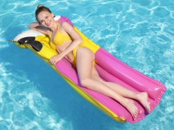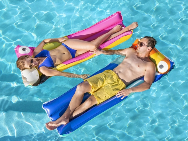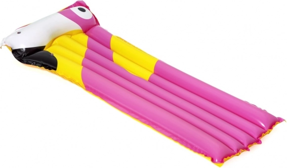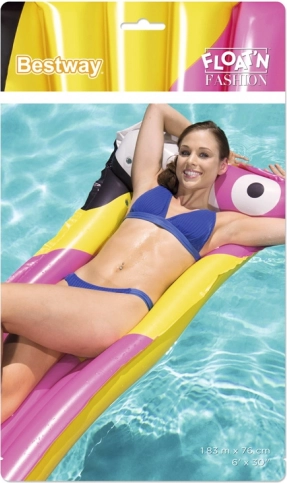 A nyugágy része az integrált felfújható párna, amely megtámasztja a fejet és a nyakat a valódi pihenésért. A színes, nyári, madármintás grafika stílust és jó hangulatot kölcsönöz a vízi szórakozásnak. Könnyű szerkezete lehetővé teszi a gyors felfújást, leeresztést, valamint az egyszerű hordozást és tárolást.