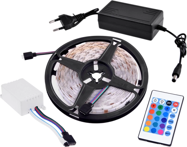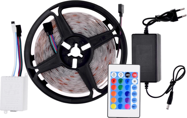 A csomag tartalmaz egy távirányítót 24 gombbal, amely megkönnyíti a világítás színeinek és üzemmódjainak változtatását. Ez számtalan lehetőséget nyújt, hogy a világítást az aktuális hangulatához vagy stílusához igazítsa.