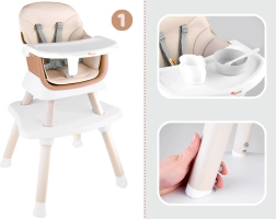 Ez a sokoldalú 6 az 1-ben etetőszék ideális az első hozzátápláláshoz és az önálló étkezéshez is. Kínál magas és alacsony üléspozíciót, asztalhoz rögzíthető ülőrészt, külön játékasztalkát, sőt speciális, építőkockákhoz való lapot is. Modern dizájnja illik bármely belső térbe, a könnyű karbantartás pedig időt takarít meg.