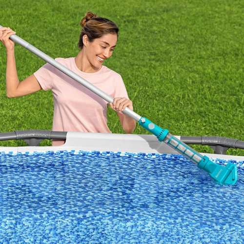 A Bestway AquaSurge vezeték nélküli medenceporszívó praktikus megoldás a homok, levelek és apró szennyeződések gyors és hatékony eltávolítására. A legfeljebb 610 cm átmérőjű medencékkel való kompatibilitásának köszönhetően a legtöbb kerti medencéhez ideális. A könnyű, háromrészes teleszkópos rúd kényelmes hatótávot és egyszerű kezelhetőséget biztosít.