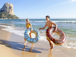Ez a stílusos, megharapott fánk formájú úszógumi élénk színeivel és játékos megjelenésével hívja fel magára a figyelmet. A 107 cm-es átmérőnek köszönhetően felnőtteknek és nagyobb gyerekeknek is ideális, és kiváló alátámasztást nyújt a vízen pihenéshez.