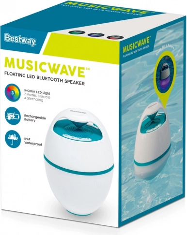 Bestway MusicWave™ úszó hangszóró tökéletes társa a medence melletti pihenéshez. Ez a vízálló Bluetooth hangszóró akár 6 órányi minőségi zenét kínál, és csodálatos színes LED világításával egyedi hangulatot teremt.