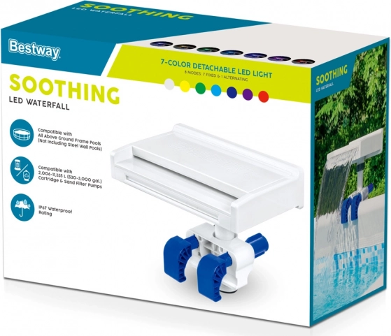 Dobd fel medencédet a Bestway Flowclear vízeséssel LED világítással, amely nemcsak a gyerekeknek szerez örömet, hanem pihentető élményt nyújt a felnőtteknek is az otthoni fürdőzés során. Ez a könnyen használható vízesés minden vázas medencemodellre felszerelhető, amelyekhez 2006–11 355 l/h kapacitású szűrőszivattyú tartozik.