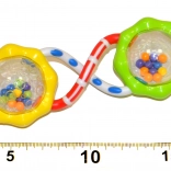 A cuki, súlyzó alakú csörgő minden kisbabának örömet szerez. A végein átlátszó golyók vannak tele színes gyöngyökkel, amelyek mozgás közben finom, megnyugtató hangot adnak. A könnyű kialakítás és a 14 × 5 cm-es kompakt méret könnyű fogást biztosít a kis kezeknek, és támogatja a finommotorika és az érzékelés fejlődését.