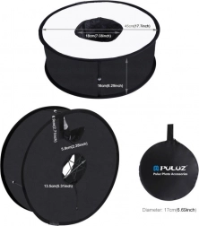 A Puluz társaság diffúzora lehetővé teszi a fény tökéletes szórását professzionális fotók készítéséhez. Egyenletesen osztja el a fényt a fényképezett tárgyon, megelőzve ezzel a túlvilágítást és az éles árnyékokat. Rugalmas pántjának köszönhetően felszerelése nagyon egyszerű és gyors. Összehajtott állapotban nagyon kompakt, ami megkönnyíti a szállítást és a mini stúdió létrehozását bárhol.