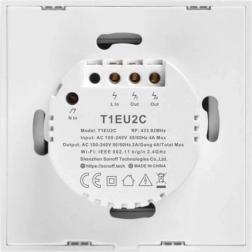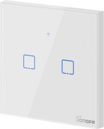 Tegye okossá a hagyományos világítást. A SONOFF T1 EU TX egy 2 csatornás érintőkapcsoló, amelyet bárhonnan vezérelhet az eWeLink (iOS/Android) alkalmazással Wi‑Fin keresztül, illetve helyben RF 433 MHz távirányítóval. Az azonnali állapotszinkron gondoskodik róla, hogy az alkalmazásban mindig a valós be‑/kikapcsolt állapotot lássa.