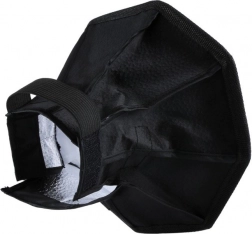 - Univerzális kompatibilitás – a rugalmas pánt és a tépőzár révén a legtöbb külső vakura illeszkedik.
