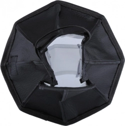 A fehér diffúz felület és a belső reflektív réteg finom, természetes megvilágítást biztosít, ideális portrékhoz és termékfotókhoz.