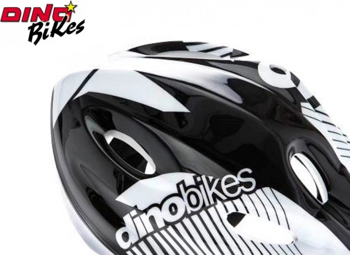 A Dino Bikes gyermek kerékpáros sisak fekete-fehér-ezüst kombinációban biztosítja a maximális biztonságot és kényelmet kerékpározás közben. Könnyű, mindössze 220 g és 5 szellőzőnyílással rendelkezik az optimális levegőellátás érdekében.