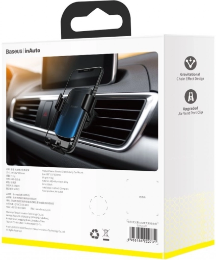 A gravitációs rögzítő rendszer lehetővé teszi a telefon gyors és egyszerű behelyezését és kivételét. Az egész konstrukció szellőzőrácsra való szerelésre van tervezve, így helyet takarít meg és kiváló láthatóságot biztosít a telefon számára menet közben.