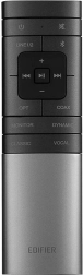 Optikai és koaxiális digitális bemenet, 2× RCA és mellékelt távirányító. A doboz oldalán fém forgatógombok találhatók a basszus, a magas és a hangerő szabályzásához.