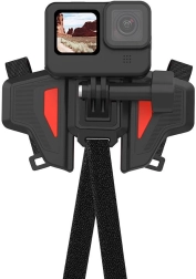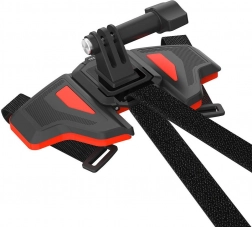 A tartó pillangószárny alakú, mindkét szárnya összecsukható. Ennek köszönhetően még jobban a sisak formájához igazíthatod. A tépőzáras rögzítés egyszerű, mégis stabil szerelést biztosít. A kamerát tartós, rozsdamentes acélból és PA66 nejlonból készült pánttal lehet rögzíteni.
