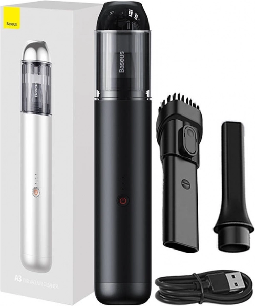 Vezeték nélküli, könnyű használatú Baseus autós porszívó A3, amely erőteljes szívóerejével és praktikus méretével kiváló választás az autók tisztán tartásához.