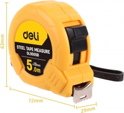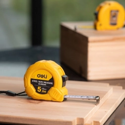 A DELI mérőszalagot pontos és kényelmes mérésre tervezték beltérben és kültéren egyaránt. A 0,11 mm vastag, merev acélszalag egyenesen tart és nem törik meg, így könnyen érhet el pontos eredményeket. Az automatikus zár és a folyamatos, lassú visszahúzás biztonságossá és intuitívvá teszi a használatot.