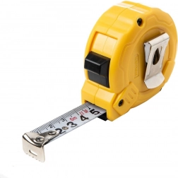 Az ergonomikus, tartós ABS műanyag tok jól kézbe illik és ellenáll az ütődéseknek és a mindennapos igénybevételnek. A praktikus fém övcsipesz lehetővé teszi az övre rögzítést, míg a csuklópánt megkönnyíti a hordozást vagy a műhelyben történő felakasztást. A szalag végén lévő mérőhorog támogatja a pontos belső és külső mérést.