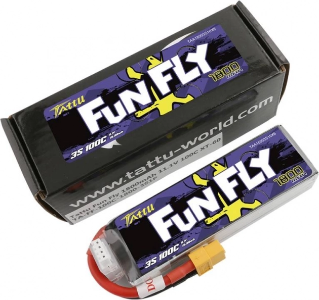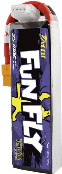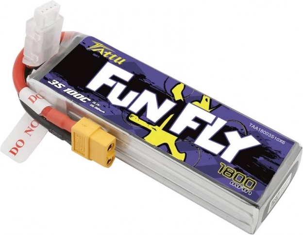 A Tattu Fun Fly 1800 mAh 3S népszerű LiPo akkumulátor verseny- és freestyle FPV-hez. Magas, 100C folyamatos kisütési áramot (csúcsban 200C) kínál az azonnali motorreakcióhoz és a stabil feszültséghez a teljes repülés során. A masszív felépítés és a precíz cellák megbízhatóságot és állandó teljesítményt nyújtanak.