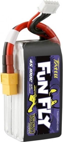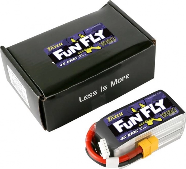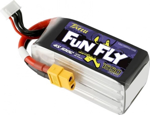 A Tattu Fun Fly 1550 mAh 4S kedvelt választás FPV versenyhez és freestyle-hoz. A 100C révén határozott teljesítményt és gyors áramleadást biztosít számottevő feszültségesés nélkül, ami fürge motorreakciókban és hosszabb, egyenletesebb repülésben mutatkozik meg.