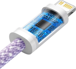 Baseus USB-C a Lightning kábel gyors és biztonságos töltésre lett tervezve Apple készülékeihez. A lila fonatnak köszönhetően tartós és stabil teljesítményt nyújt a Power Delivery protokoll támogatásával.