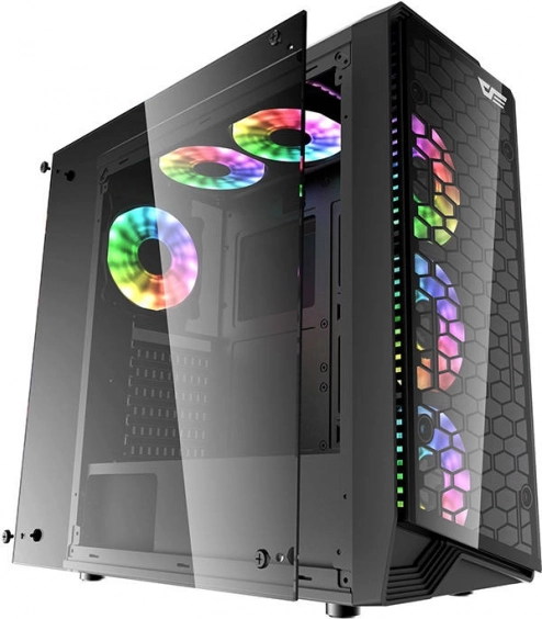 A ház átlátszó elülső és oldalsó panellel rendelkezik edzett üvegből és egyedi méhsejt mintával, amely lehetővé teszi fantasztikus RGB világítási effektek létrehozását.