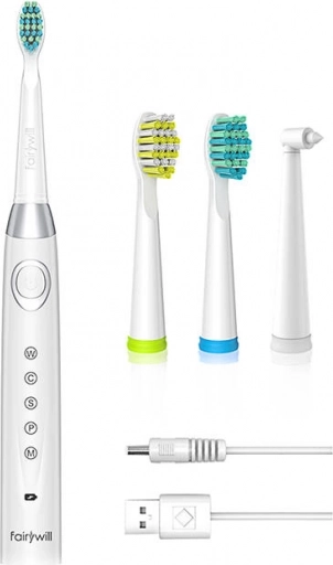 Fehér FairyWill sonikus fogkefe cserefejekkel: Hatékonyan tisztítson, és gondoskodjon fogai egészségéről a FairyWill sonikus fogkefével, amely percenként akár 40,000 rezgést is generál. Tartalmaz egy okos 2 perces időzítőt, és öt különböző módot kínál. Emellett IPX7 vízálló és hosszú ideig használható. A csomagban négy cserélhető fej is megtalálható.