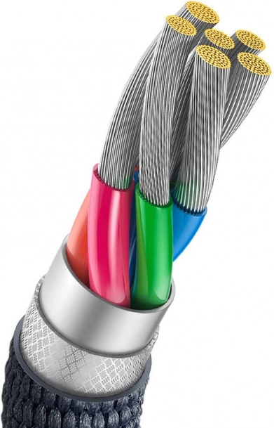 A prémium nylonfonat és a megerősített törésgátlók óvják a kábelt a töréstől és húzódástól. Belül 8‑eres vezeték gondoskodik a stabil áramellátásról és a hatékony töltésről. A praktikus 2 méteres hossz használatot könnyítő megoldás a hátsó ülésen vagy nehezebben elérhető konnektoroknál is.