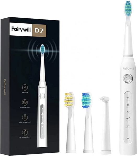 Élvezze a ragyogó mosoly varázsát a FairyWill innovatív sonikus fogkeféjével, az FW507 modellel, amely az ADA által jóváhagyott vibrációs technológiát alkalmaz, akár 40.000 rezgéssel percenként. 5 eltérő üzemmódja és intelligens 2 perces időzítője a tökéletes tisztítás élményét nyújtja. Hosszú üzemidejű akkumulátora akár 30 napos használatot is biztosít egyetlen töltéssel. A készlet cserélhető fejeket is tartalmaz.