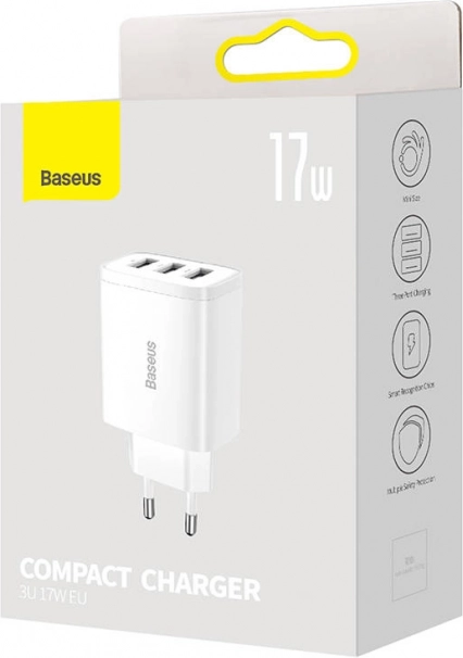 Univerzális töltőt keres telefonhoz, fülhallgatóhoz és egyéb elektronikához? Ez a kompakt BASEUS adapter a 17 W teljesítményt hármas USB kimenettel kombinálja, így kényelmesen, egyszerre akár három eszközt is tölthet. Az integrált chip automatikusan felismeri a csatlakoztatott eszközt, és az optimális áramerősséget választja a gyors és kímélő energiapótláshoz.