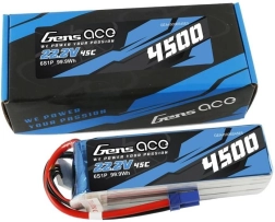 A Gens Ace 4500mAh LiPo Akku ideális választás a 500-as, Goblin 500-as stb. helikopterek számára. Ez a nagy teljesítményű akkumulátor biztosítja a szükséges energiát a zökkenőmentes és hatékony repüléshez.