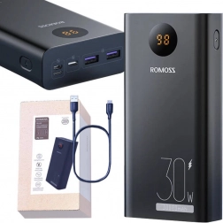 A Romoss PEA30 megbízható powerbank óriási, 30 000 mAh kapacitással, amely gyorsan feltölti a telefont, a tabletet és a fülhallgatót is. A 30 W teljesítménynek és a Power Delivery, Quick Charge 3.0 és AFC támogatásnak köszönhetően igazán fürgén pótolja az energiát – például egy iPhone 13 Pro Max kb. 55%-ig, míg egy Samsung S21 Ultra kb. 40%-ig tölthető fel körülbelül 30 perc alatt.