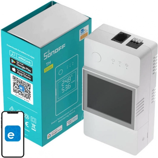 Az univerzális okos kapcsoló 20 A terhelhetőséggel ideális padlófűtéshez, szivattyúkhoz, öntözéshez, üvegházakhoz, beltéri medencékhez, borhűtőkhöz és terráriumokhoz. Valós időben figyeli a hőmérsékletet és pártartalmat, és a beállított értékek elérésekor kapcsolja a csatlakoztatott eszközöket. Az eWeLink alkalmazással bárhonnan irányítható, LAN módban is, internet nélkül.