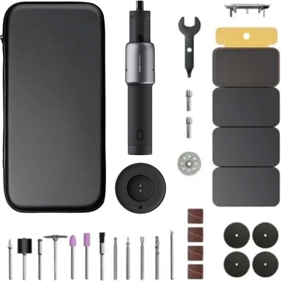 A csomag tartalmaz egy széles választékú kiegészítőt, például fúrókat, csiszoló fejeket, polírozó korongokat és porvédő burkolatot, amelyek bővítik a munkavégzési lehetőségeket. A felhasznált anyag TPU műanyag gumi borítással a biztos fogás érdekében, valamint beépített LED világítással a sötétben végzett munkához.