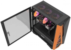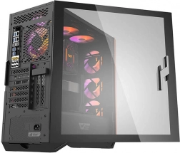A nyitható üvegpanel elegánsan kiemeli a komponenseket és az RGB-t. A praktikus fogantyú megkönnyíti a gyors hozzáférést a hardverhez és a karbantartáshoz.