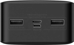 - Több eszköz egyidejű csatlakoztatása: A powerbank több kimeneti opcióval rendelkezik, mint két USB kimenet, egy micro USB bemenet és egy USB-C bemenet/kimenet, lehetővé téve akár egy tablet és két okostelefon egyidejű töltését.