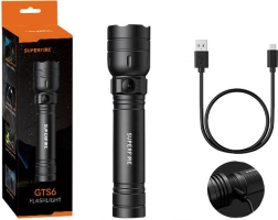 A kompakt SUPERFIRE GTS6 zseblámpa 360 lm fényáramot, akár 150 m hatótávot és 5 világítási módot kínál. USB‑C töltéssel rendelkezik, üzemidő akár 2 óra, tartós alumínium ház és IP44 védettség a megbízható használathoz otthon, túrázáskor és kempingezéskor.