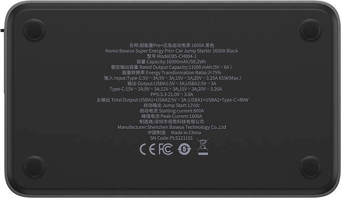 A Baseus Super Energy PRO powerbank és autoindító funkciókat kombinál, így ideális útitárs. Élménye vezeték nélküli töltéssel 80 W kimenő teljesítménnyel és három eszköz egyidejű töltésével (USB-A1, USB-A2, USB-C), gyorsan feltöltheti, hogy eszközei ne maradjanak energiátlanul.