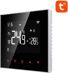 Az intelligens kazántermosztát kényelmes fűtést és melegvíz-előállítást biztosít 1 °C pontossággal. A ZIGBEE 3.0-nak és a TUYA / Smart Life alkalmazásoknak köszönhetően bárhonnan vezérelhető, beleértve a Alexa és Google hangasszisztenseket. Kínál heti programozást napi 6 idősávval, áttekinthető LCD kijelzőt, gyermekzárat és takarékos működést 1 W alatti fogyasztással.