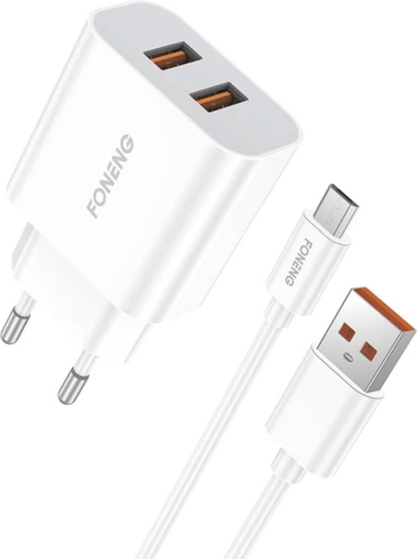 Tölts egyszerre két eszközt a kompakt FONENG töltővel, amely 12 W teljesítményt és két USB portot kínál. A 100–240 V széles bemenet ideális utazáshoz, az intelligens chip véd a túlmelegedés, a túltöltés és a rövidzárlat ellen. A csomagban Micro USB kábel található az azonnali használathoz.