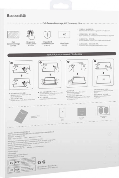 A rendkívül vékony Baseus Crystal edzett üveg a Huawei MatePad Pro 12,6 készülékhez 9H keménységet, magas ütés- és karcállóságot, valamint kristálytiszta HD megjelenítést biztosít. A 0,3 mm-es vastagságnak köszönhetően megőrzi az érintésérzékenységet, egyszerűen telepíthető, és az AF réteg csökkenti az ujjlenyomatokat. Emellett kékfény-szűrős szemvédelem is rendelkezésre áll.