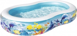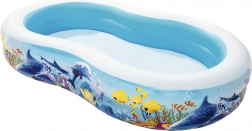 Élvezd a nyarat a tágas, óceán motívumos BESTWAY felfújható medencével. Ovális formájának, széles oldalfalainak és stabil, kamrás kialakításának köszönhetően ideális a gyerekek biztonságos vízi szórakozásához. Tartós vinylből készült, gyors leeresztést és könnyű tárolást kínál.