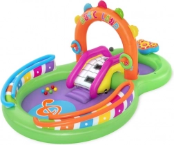 Tartalma: 1 medence, 1 csúszda, 1 dob, 2 felfújható karika, 1 mikrofon, 6 színes labda, 1 javítófolt.
