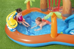 A Bestway Vulkán felfújható vízi játszótér a kertet a nyári szórakozás központjává változtatja. A gyerekek élvezhetik a csúszást a puha felfújható csúszdán, a fröcskölést a vízpermet alatt, valamint a játékot a labdákkal és dobóelemekkel. A sekély pancsolónak köszönhetően a játszóközpont a legkisebbek számára is megfelelő, míg a tartós PVC és a leeresztő szelep megkönnyíti a használatot és a karbantartást.