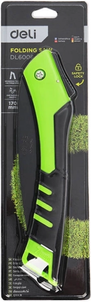 Kompakt, összecsukható Deli Tools fűrész gyors fa vágására. 170 mm-es hosszának köszönhetően könnyen hordozható és mindig kéznél van. Kínál biztonsági zárat a véletlen összecsukódás ellen, tartós kivitel és kényelmes, ergonomikus markolat a biztos fogásért hosszabb munka során is.