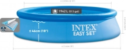 Klasszikus a föld feletti medencék között. Intex Easy Set az egyszerű és gyors összeszereléséről híres a felfújható felső peremnek köszönhetően. Csak fel kell fújni, és a víz emelkedő oszlopa maga felépíti a medencét.