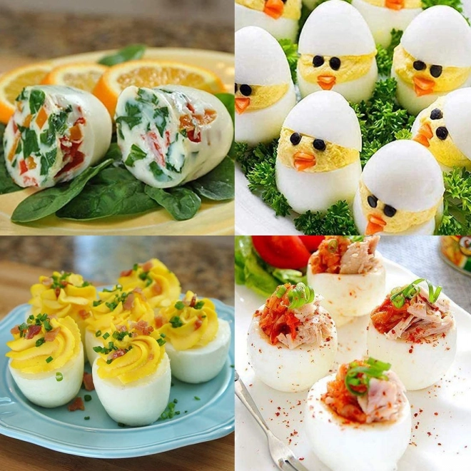 A szilikon forma segít ízletes főtt vagy töltött tojások elkészítésében. A tojásokat nem kell meghámozni, és már főzés előtt is ízesíthetők.