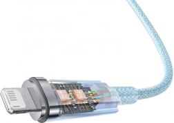 A kábel kettős chippel van felszerelve a hőmérséklet figyelésére, amely megvédi eszközeit a túlmelegedéstől és túltöltéstől. A töltés állapotjelzője vizuális ellenőrzést biztosít a folyamat felett színes fénnyel. Az tartós kivitel ónnal borított réz maggal és kettős burkolattal hosszú élettartamot és stabil teljesítményt garantál. Nylon fonás és megerősített csatlakozási pontok a kábel és csatlakozók között növelik a kopásállóságot.