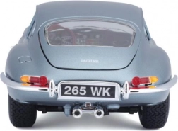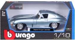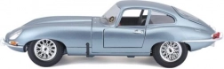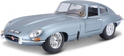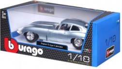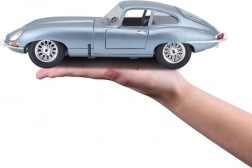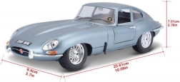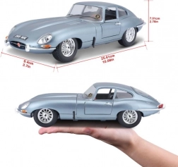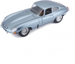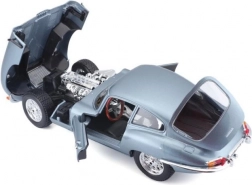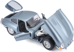 Fém autómodell 1:18 Bburago 18-12044 Jaguar E-type Coupe nemcsak gyűjtőknek. Nyitható ajtókkal és motorháztetővel rendelkezik, a kormányzással a kerekek elfordítása teljesen funkcionális. A modell színe ezüstkék metál.
