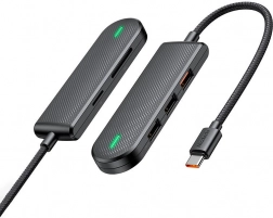 Hozd ki a legtöbbet eszközödből a Mcdodo 5 az 1-ben USB‑C elosztóval. Mindent megkapsz a perifériák csatlakoztatásához, a gyors adatátvitelhez és a kártyaolvasáshoz. A hub ideális MacBookhoz, valamint USB‑C-s laptopokhoz és telefonokhoz.