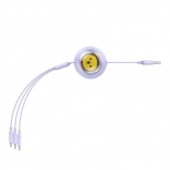 A kompakt visszahúzható mechanizmus helyet takarít meg a táskában vagy zsebben, a hossza pedig akár 1,1 m-re állítható. A tartós PC + TPE anyagok növelik a rugalmasságot, védik a kábelt a töréstől és a túlmelegedéstől, a minőségi réz vezetékek pedig megbízható vezetőképességet nyújtanak.