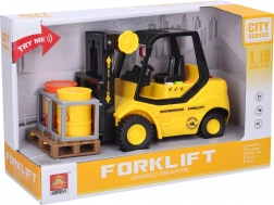 A sárga-fekete targonca tökéletes kiegészítő minden gyermek játékgyűjteményébe. Ez a modell ügyes sofőrök számára készült, akik értékelik a mozgatható előrészt, amely alkalmas a raklapok emelésére.